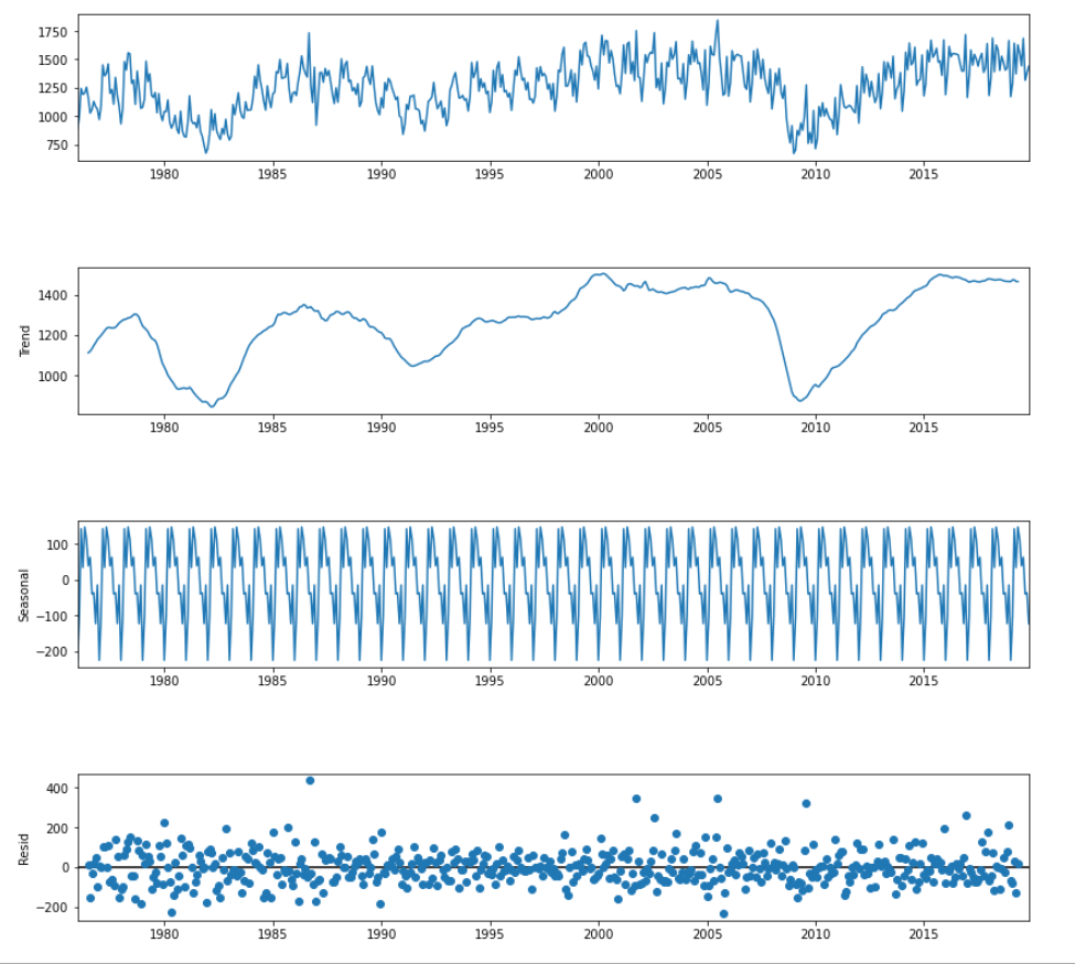 Using time series forecasting, analyzed monthly vehicle sales in the United States between January 1976 and November 2019, found the overall trend over time and made forecasts for vehicle sales in December 2019 and May 2020.